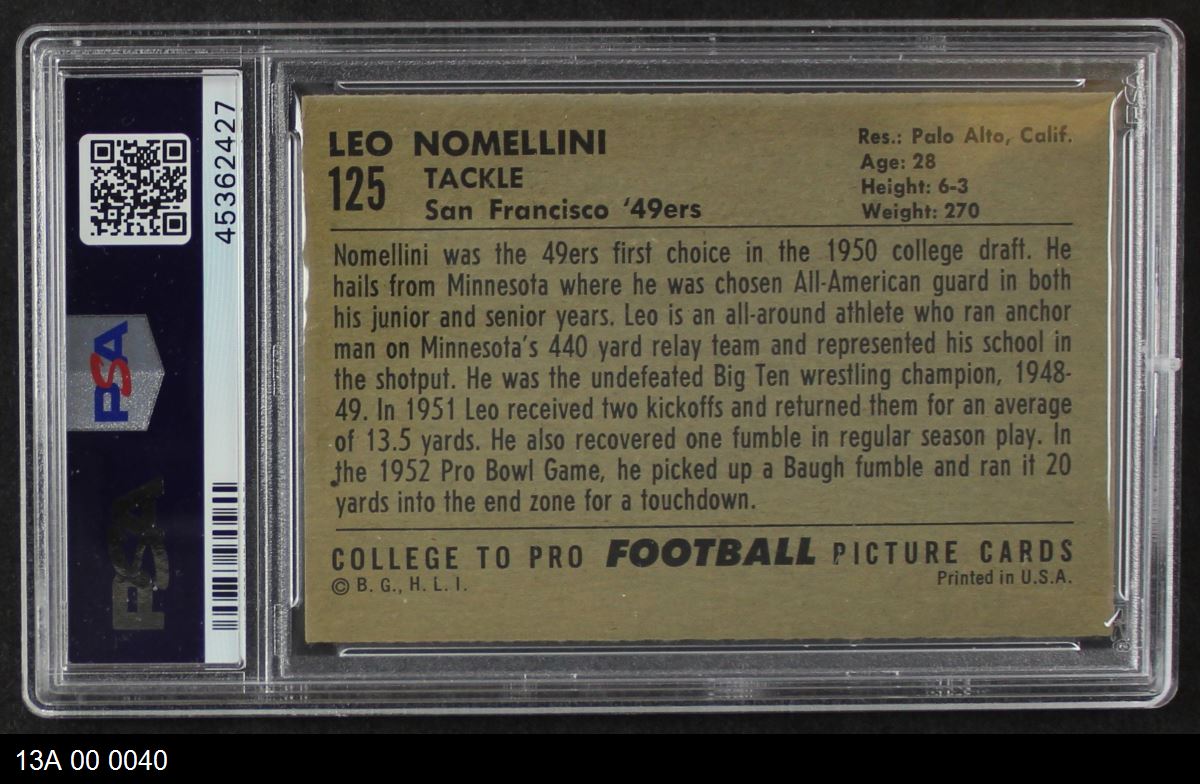 | 1952 Bowman Large #125 Leo Nomellini | PSA 6 - EX/MT | Front | Back |