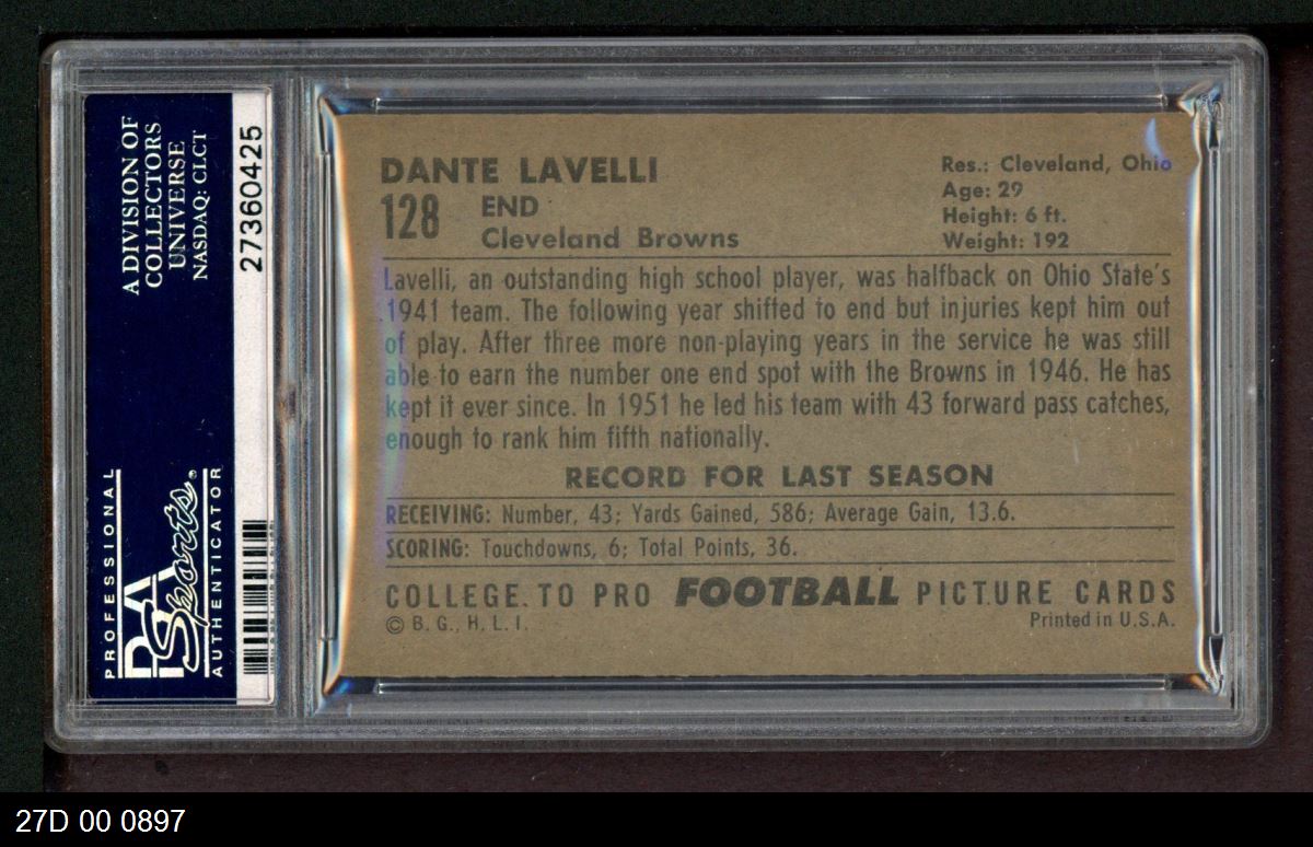 | 1952 Bowman Large #128 Dante Lavelli | PSA 6 - EX/MT | Front | Back |