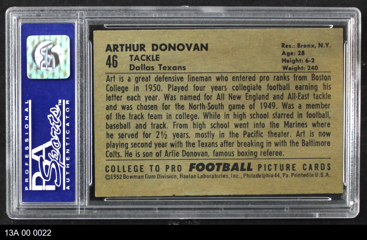 | 1952 Bowman Large #46 Art Donovan | PSA 4 - VG/EX | Front | Back |