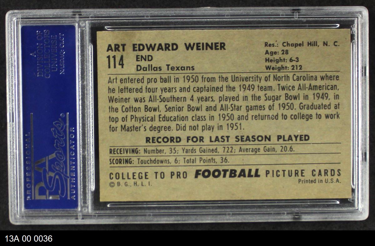 | 1952 Bowman Large #114 Art Weiner | PSA 7 - NM | Front | Back |