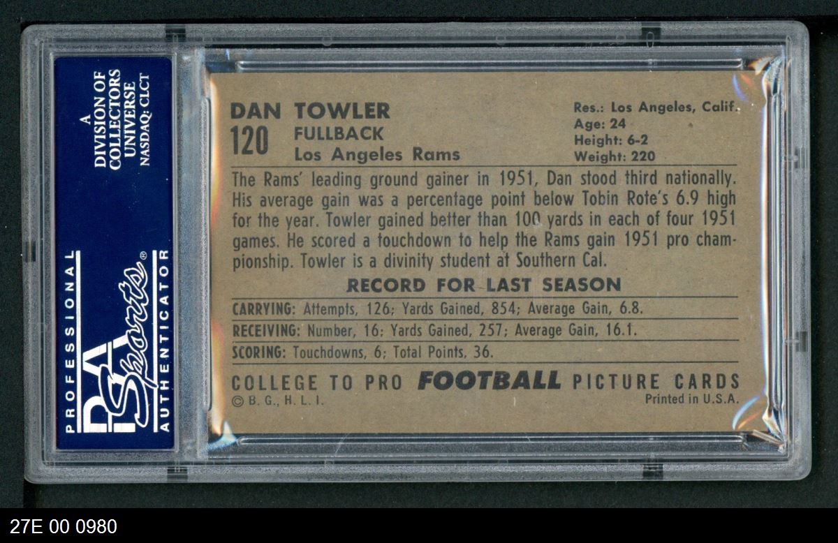 | 1952 Bowman Large #120 Dan Towler | PSA 7 - NM | Front | Back |