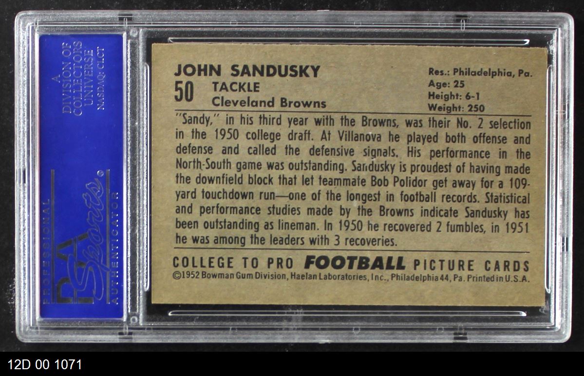 | 1952 Bowman Large #50 John Sandusky | PSA 6 - EX/MT | Front | Back |