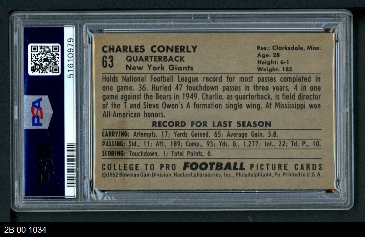 | 1952 Bowman Large #63 Charley Conerly | PSA 5 - EX | Front | Back |