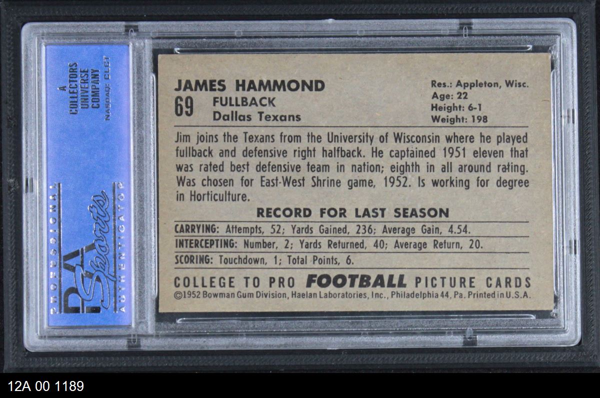 | 1952 Bowman Large #69 James Hammond | PSA 7 - NM | Front | Back |