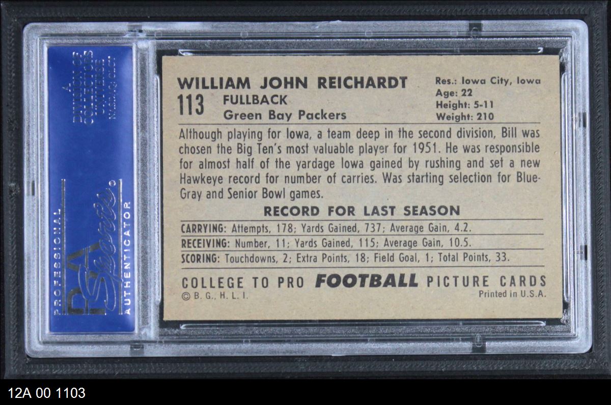 | 1952 Bowman Large #113 Bill Reichardt | PSA 7 - NM | Front | Back |