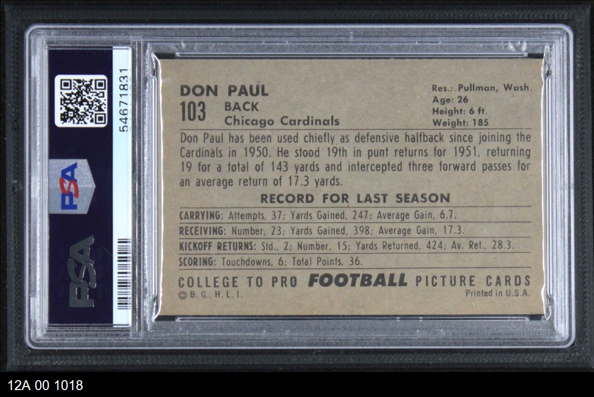 | 1952 Bowman Large #103 Don Paul | PSA 7 - NM | Front | Back |