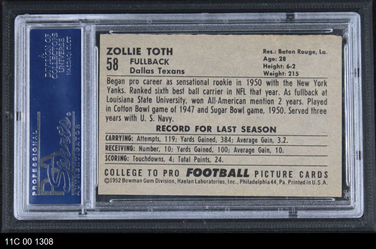 | 1952 Bowman Large #58 Zollie Toth | PSA 7 - NM | Front | Back |