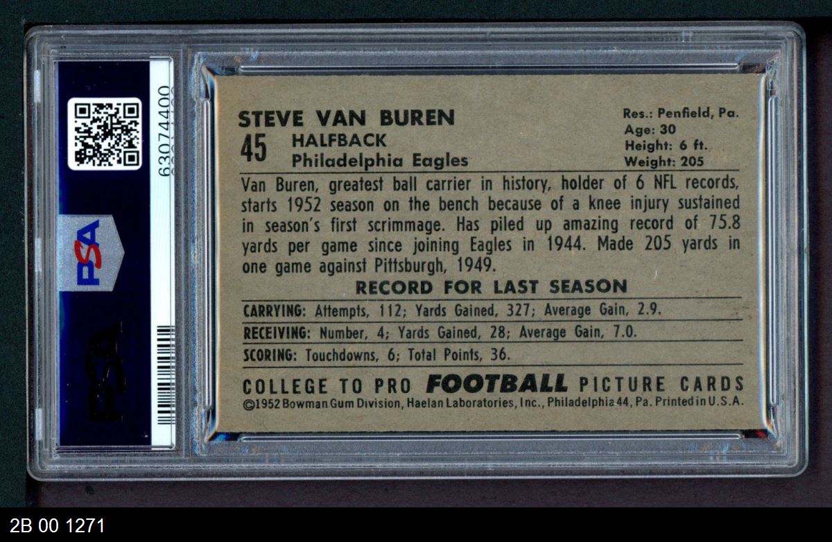| 1952 Bowman Large #45 Steve Van Buren | PSA 7 - NM | Front | Back |