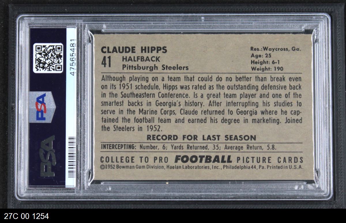 | 1952 Bowman Large #41 Claude Hipps | PSA 6.5 - EX/MT+ | Front | Back |