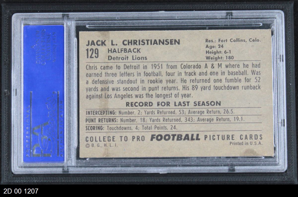 | 1952 Bowman Large #129 Jack Christiansen | PSA 7 - NM | Front | Back |