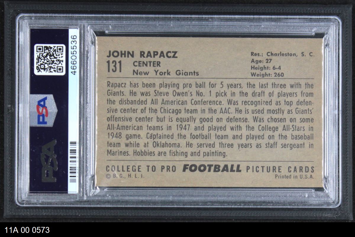 | 1952 Bowman Large #131 John Rapacz | PSA 6 - EX/MT | Front | Back |
