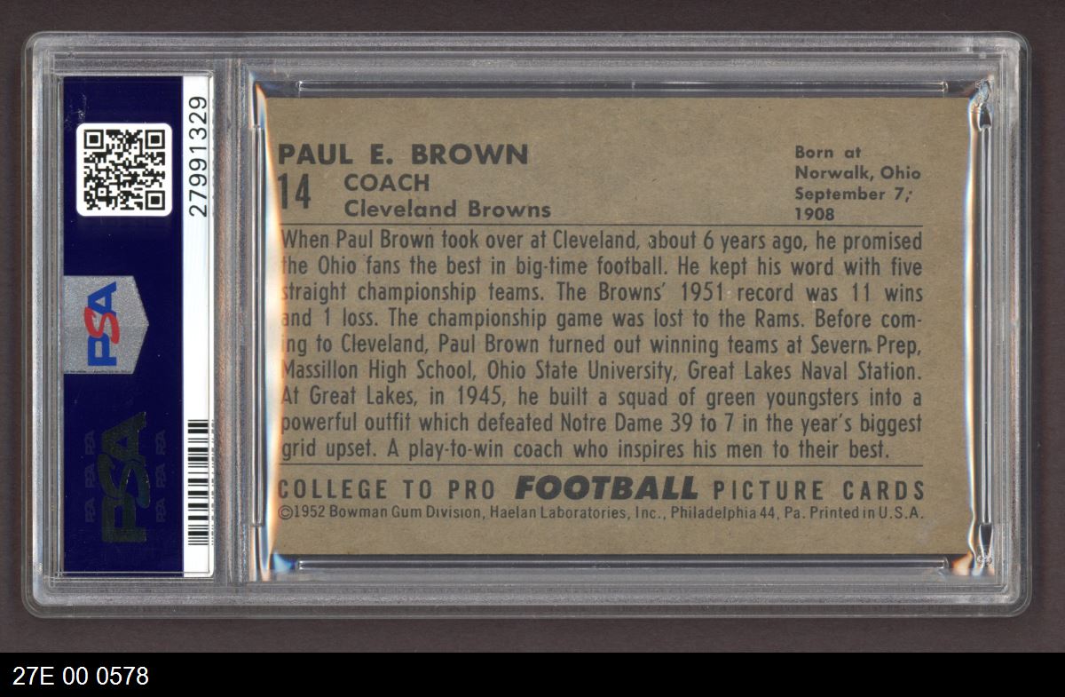 | 1952 Bowman Large #14 Paul Brown | PSA 4 - VG/EX | Front | Back |