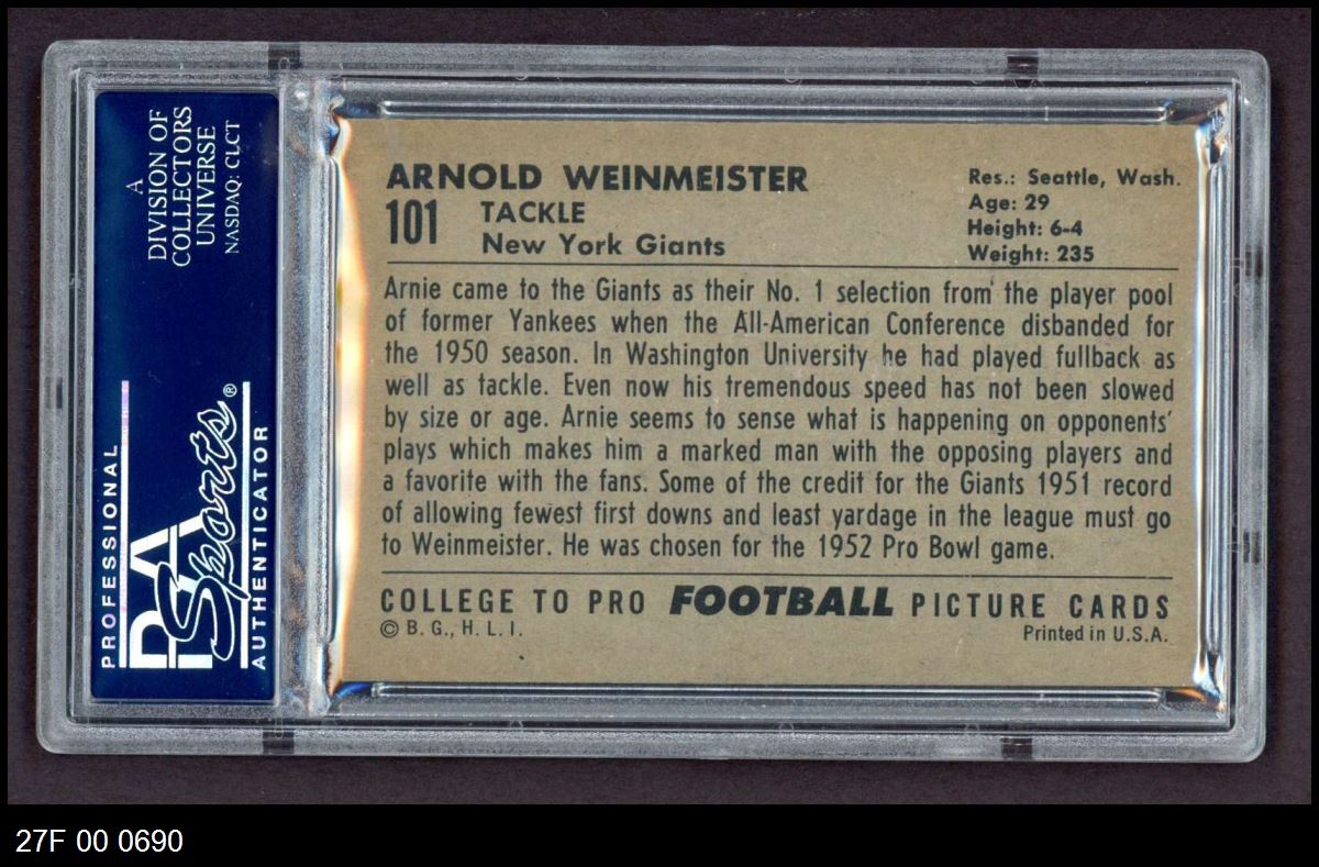 | 1952 Bowman Large #101 Arnold Weinmeister | PSA 5.5 - EX+ | Front | Back |