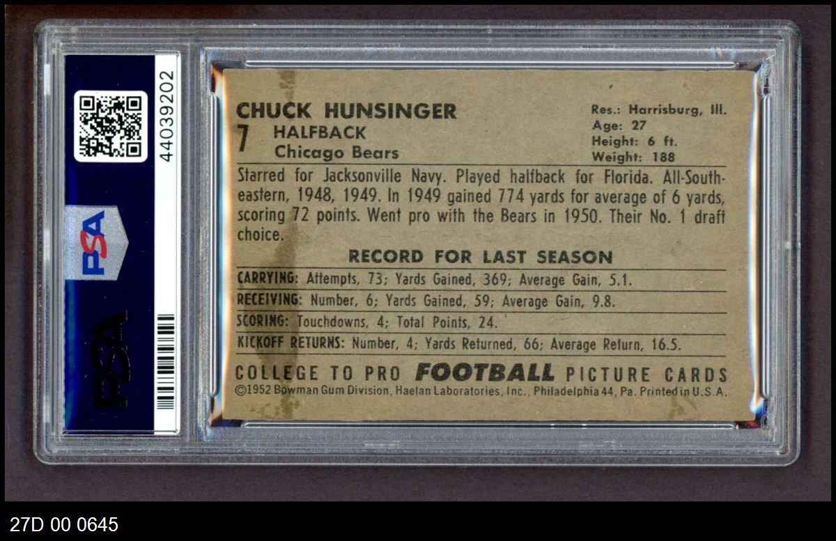 | 1952 Bowman Large #7 Chuck Hunsinger | PSA 5 - EX | Front | Back |