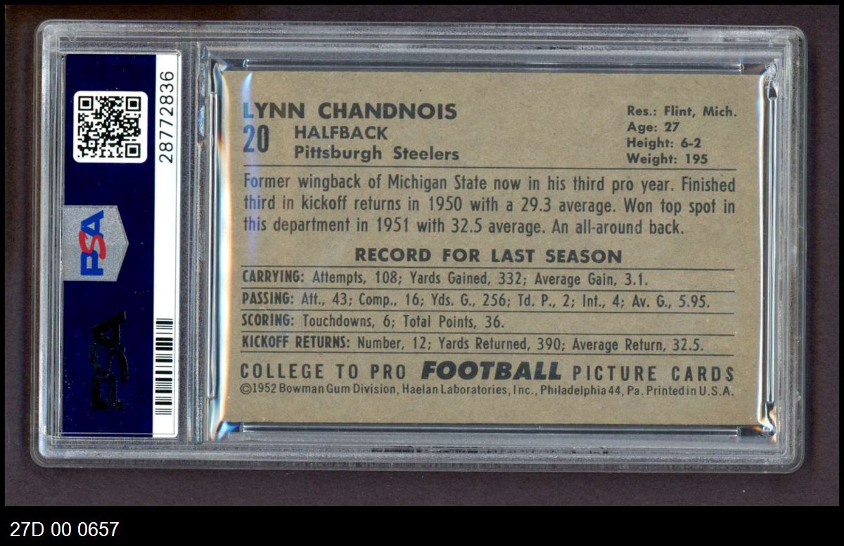 | 1952 Bowman Large #20 Lynn Chandnois | PSA 5 - EX | Front | Back |