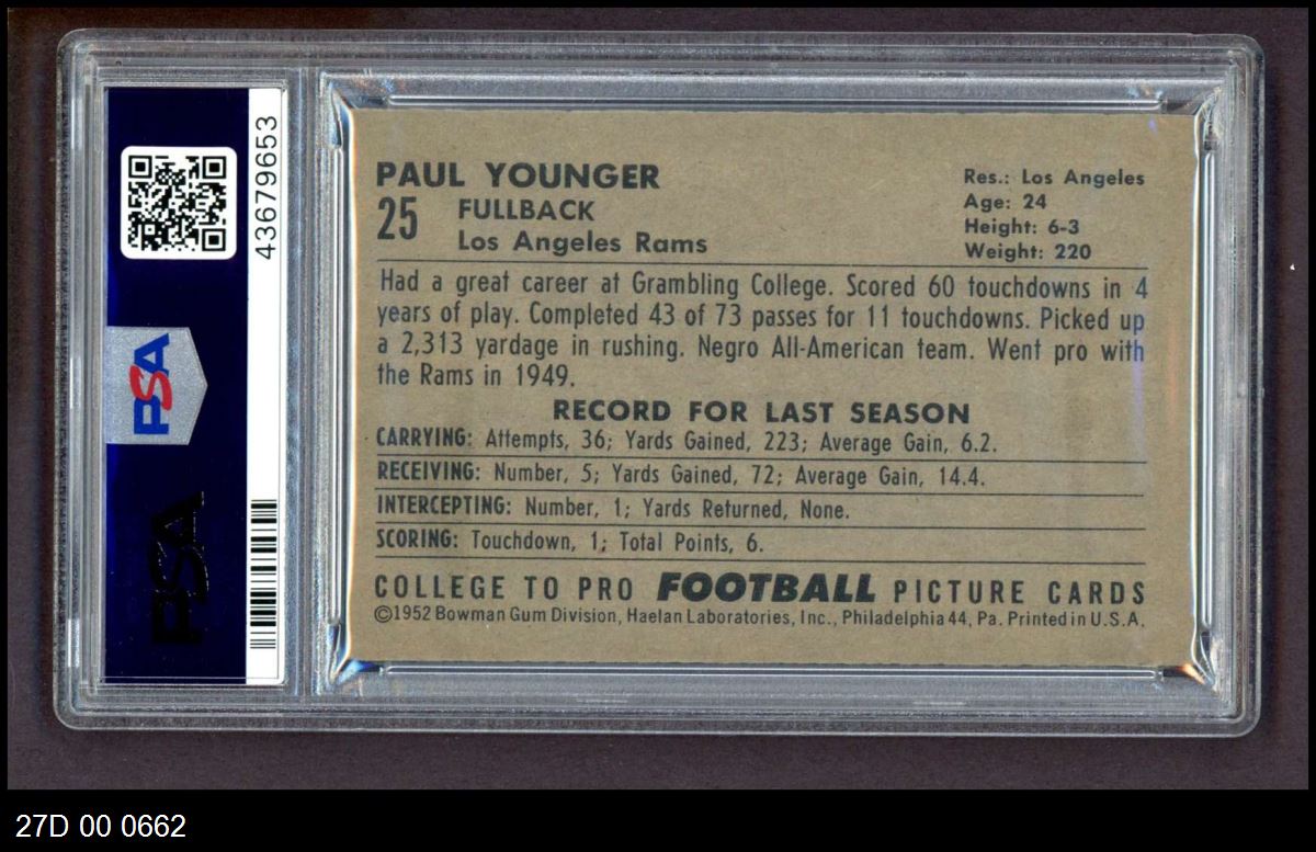 | 1952 Bowman Large #25 Tank Younger | PSA 5 - EX | Front | Back |