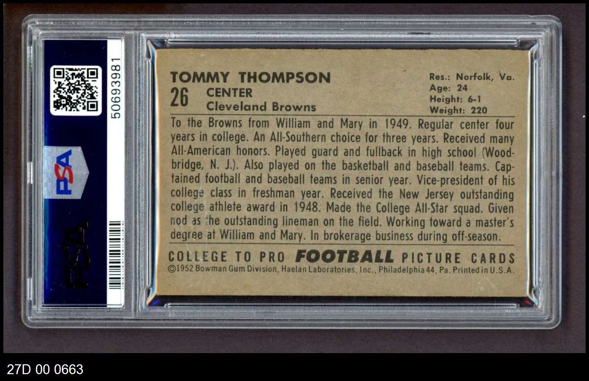 | 1952 Bowman Large #26 Tom Thompson | PSA 4 - VG/EX | Front | Back |