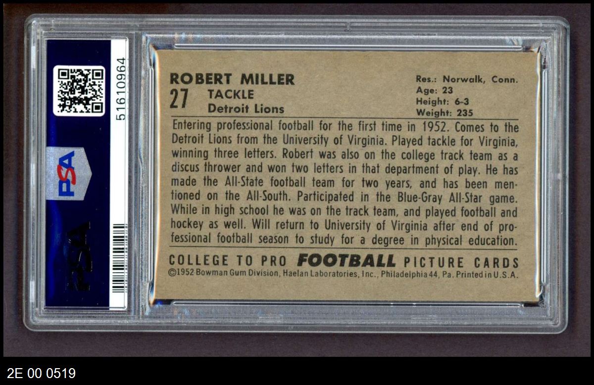 | 1952 Bowman Large #27 Robert Miller | PSA 4 - VG/EX | Front | Back |