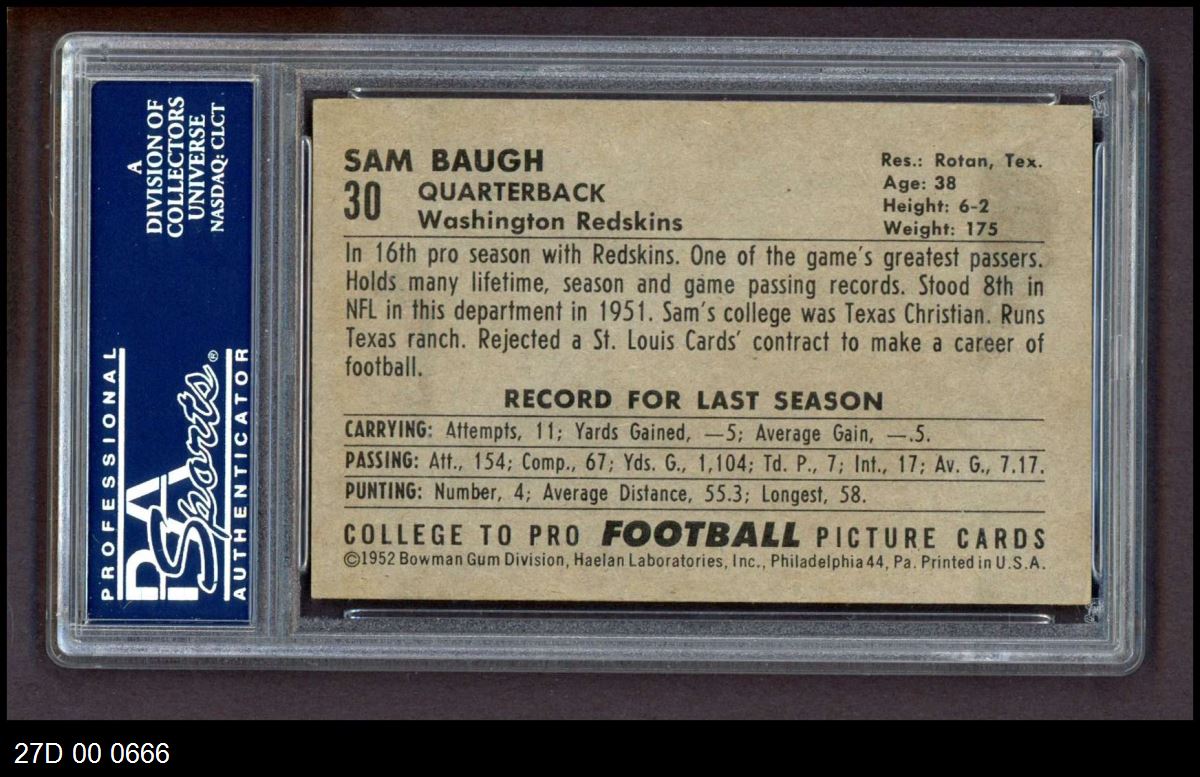 | 1952 Bowman Large #30 Sammy Baugh | PSA 5 - EX | Front | Back |