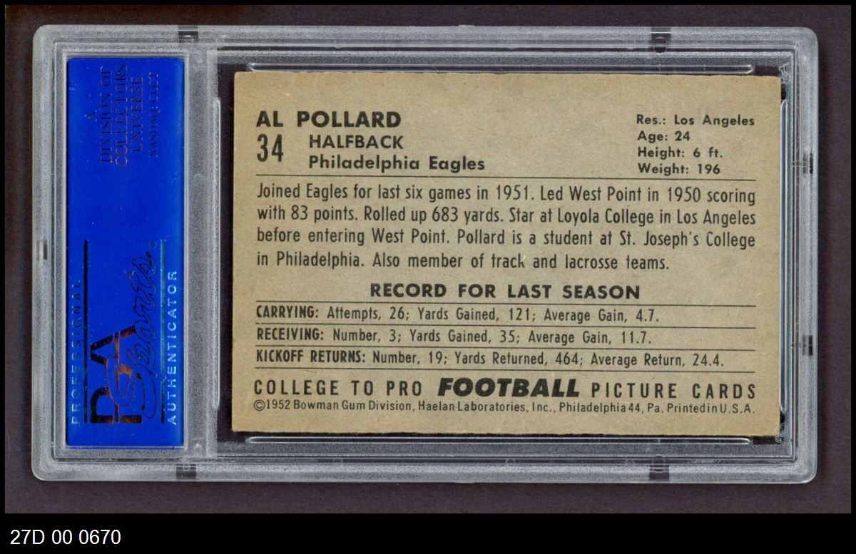| 1952 Bowman Large #34 Al Pollard | PSA 5 - EX | Front | Back |