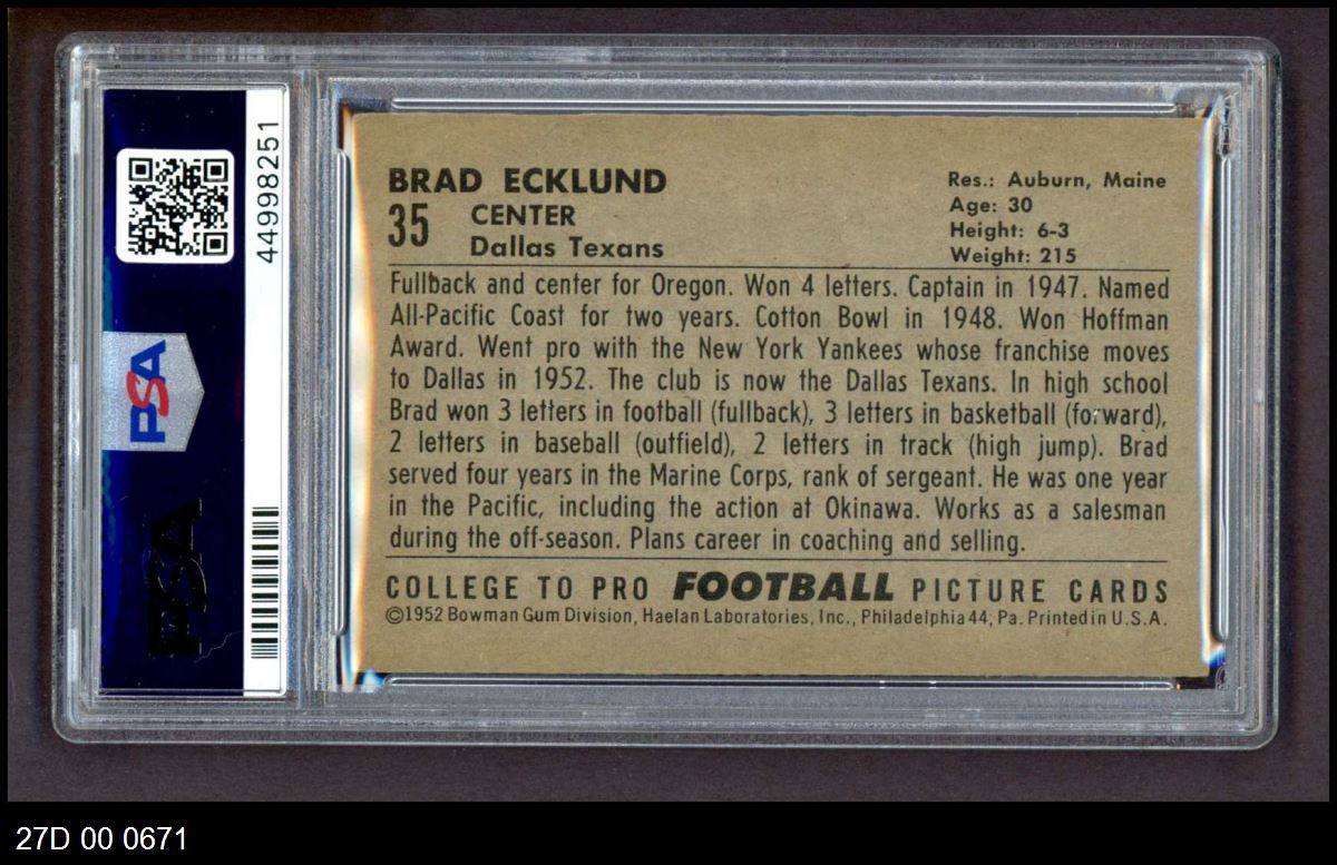 | 1952 Bowman Large #35 Brad Ecklund | PSA 4 - VG/EX | Front | Back |