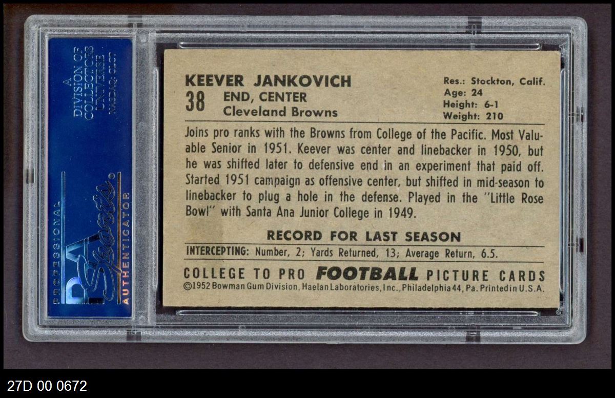 | 1952 Bowman Large #38 Keever Jankovich | PSA 5 - EX | Front | Back |