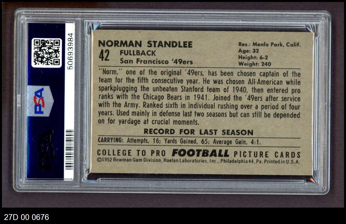 | 1952 Bowman Large #42 Norm Standlee | PSA 6 - EX/MT | Front | Back |