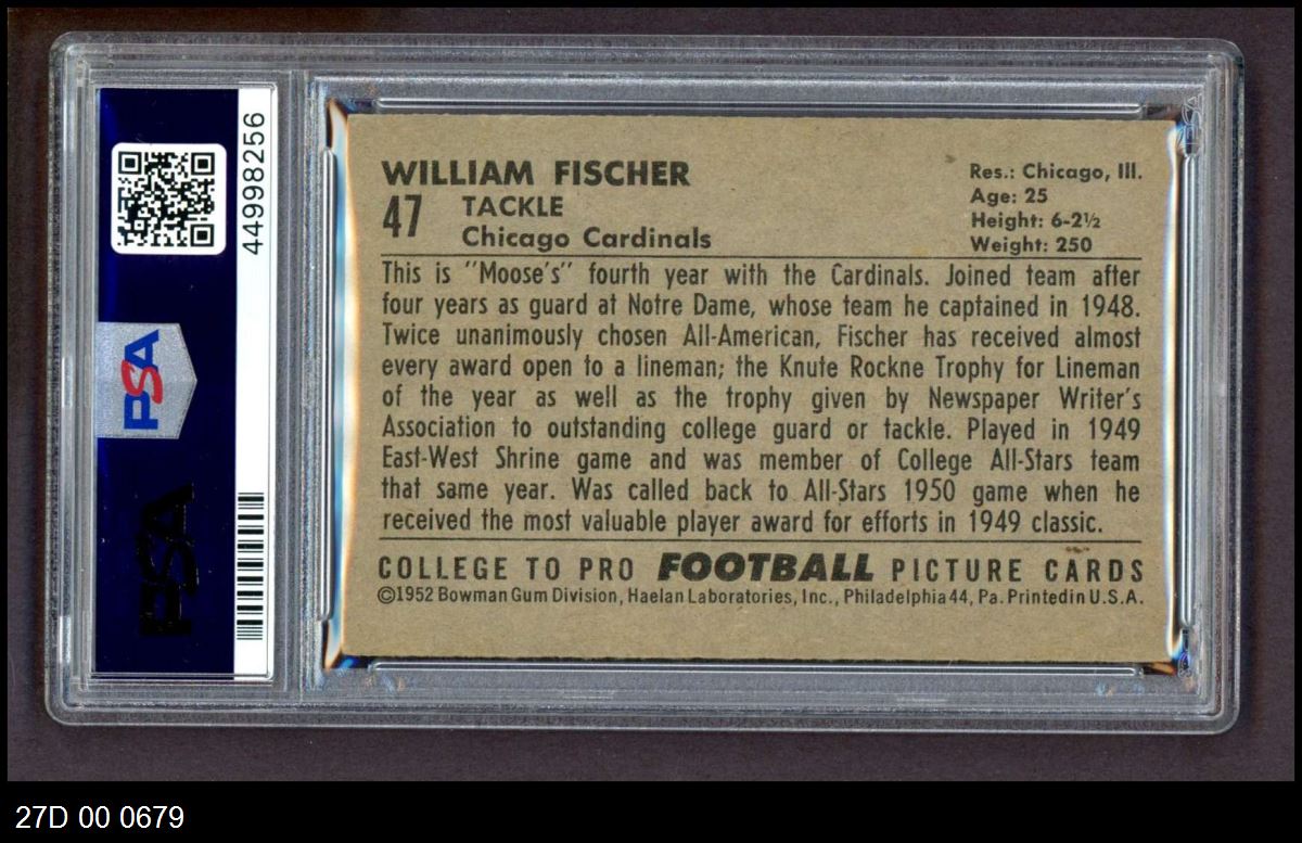| 1952 Bowman Large #47 William Fischer | PSA 5 - EX | Front | Back |