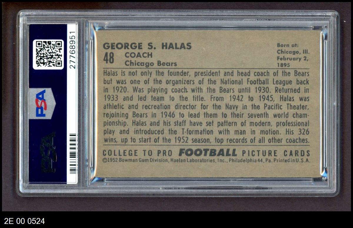 | 1952 Bowman Large #48 George Halas | PSA 4.5 - VG/EX+ | Front | Back |