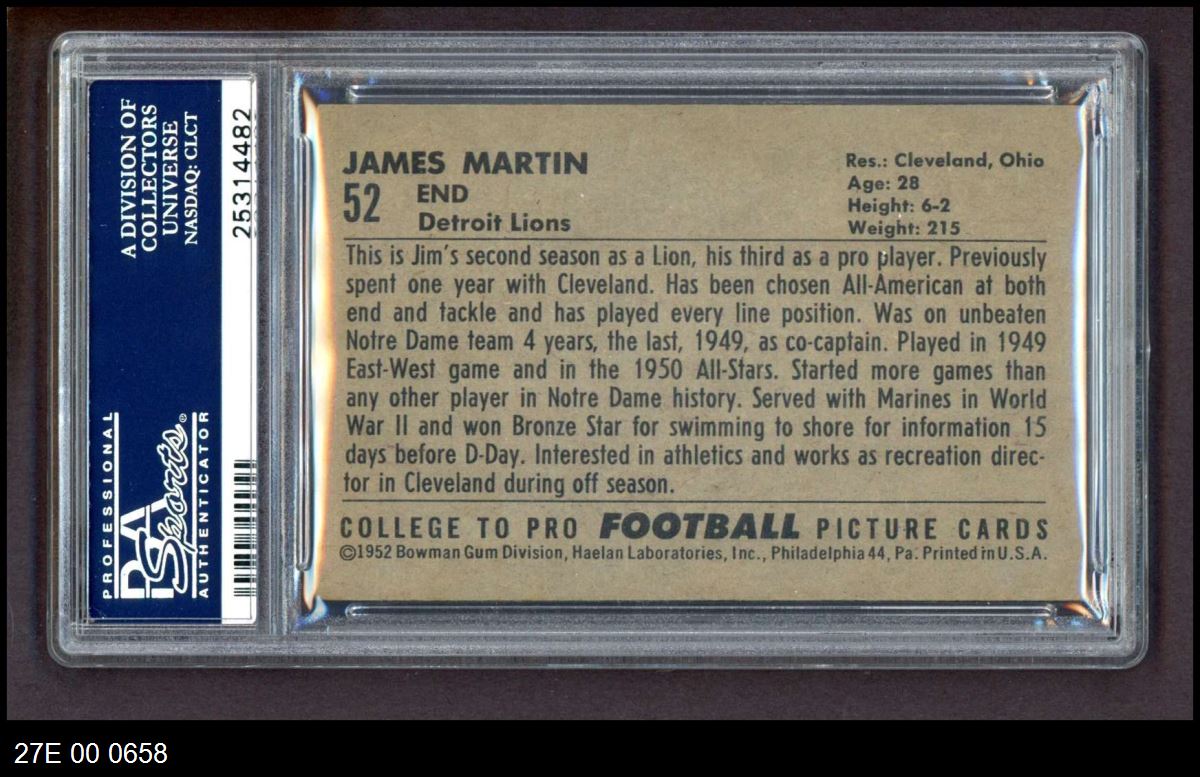| 1952 Bowman Large #52 Jim Martin | PSA 5.5 - EX+ | Front | Back |