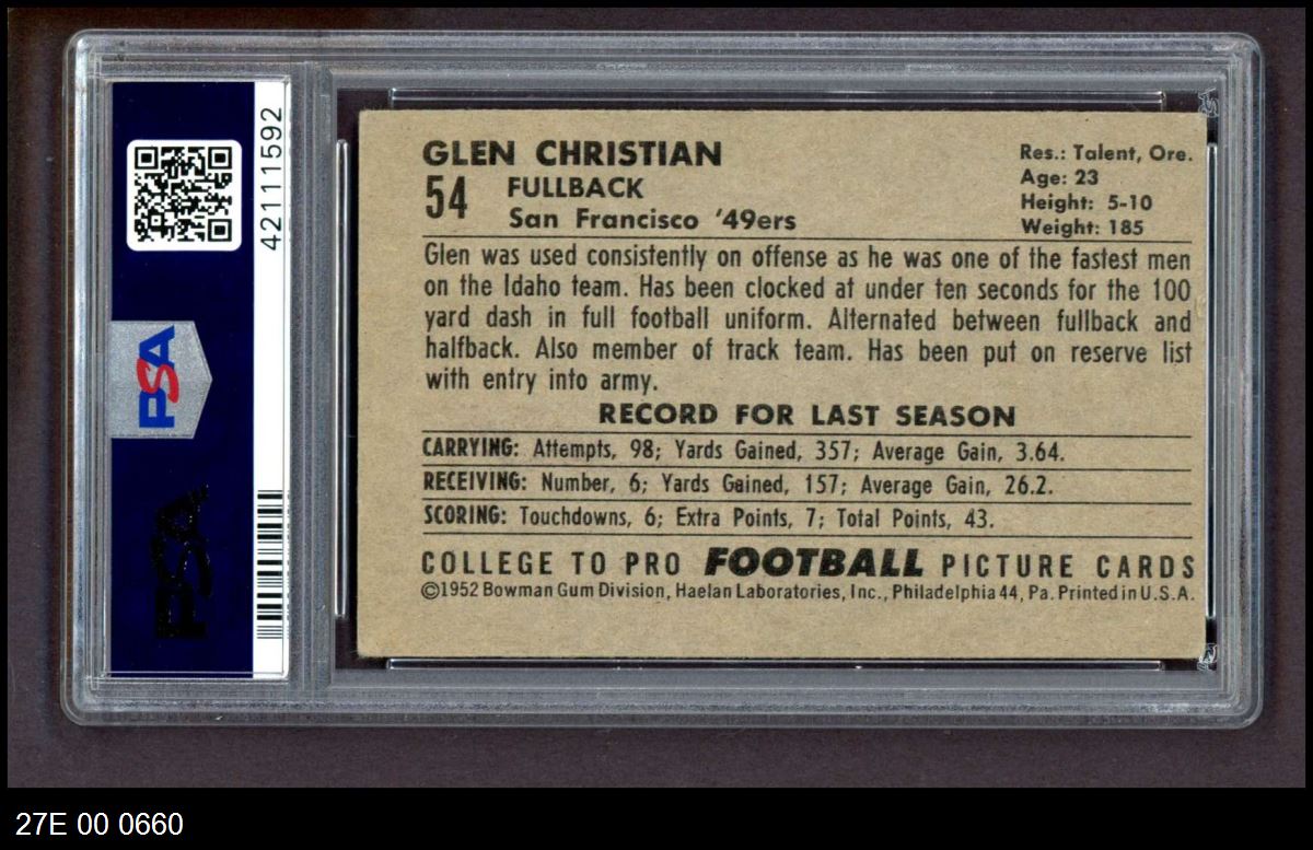 | 1952 Bowman Large #54 Glen Christian | PSA 4 - VG/EX | Front | Back |