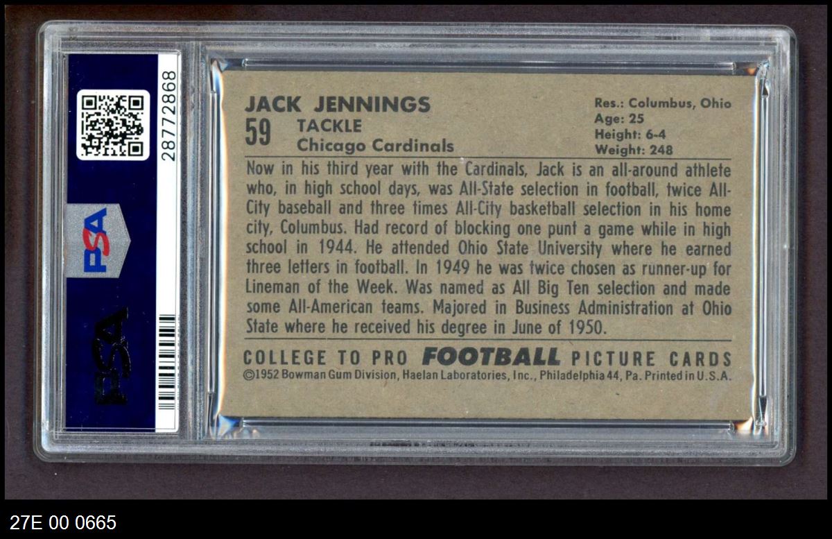 | 1952 Bowman Large #59 Jack Jennings | PSA 6 - EX/MT | Front | Back |