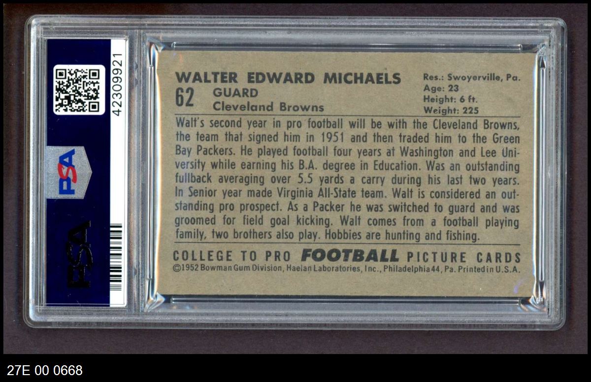 | 1952 Bowman Large #62 Walt Michaels | PSA 5 - EX | Front | Back |