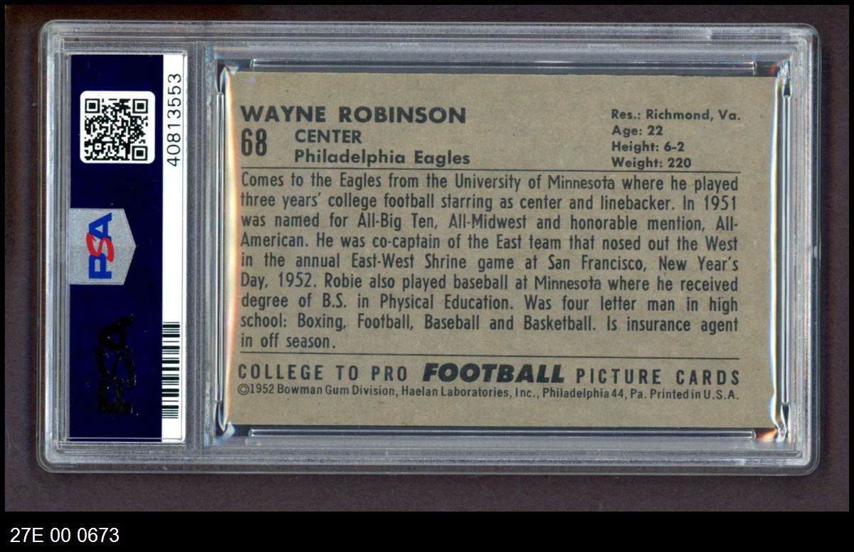 | 1952 Bowman Large #68 Wayne Robinson | PSA 5 - EX | Front | Back |