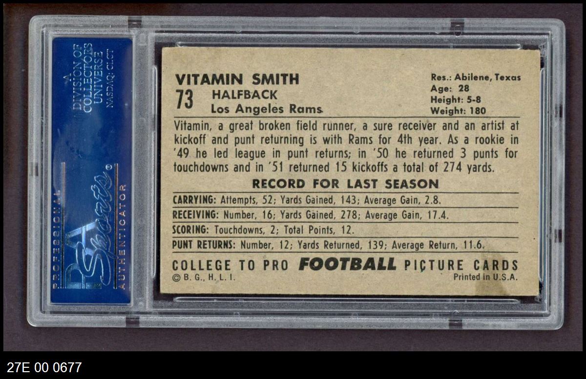 | 1952 Bowman Large #73 Vitamin Smith | PSA 5 - EX | Front | Back |