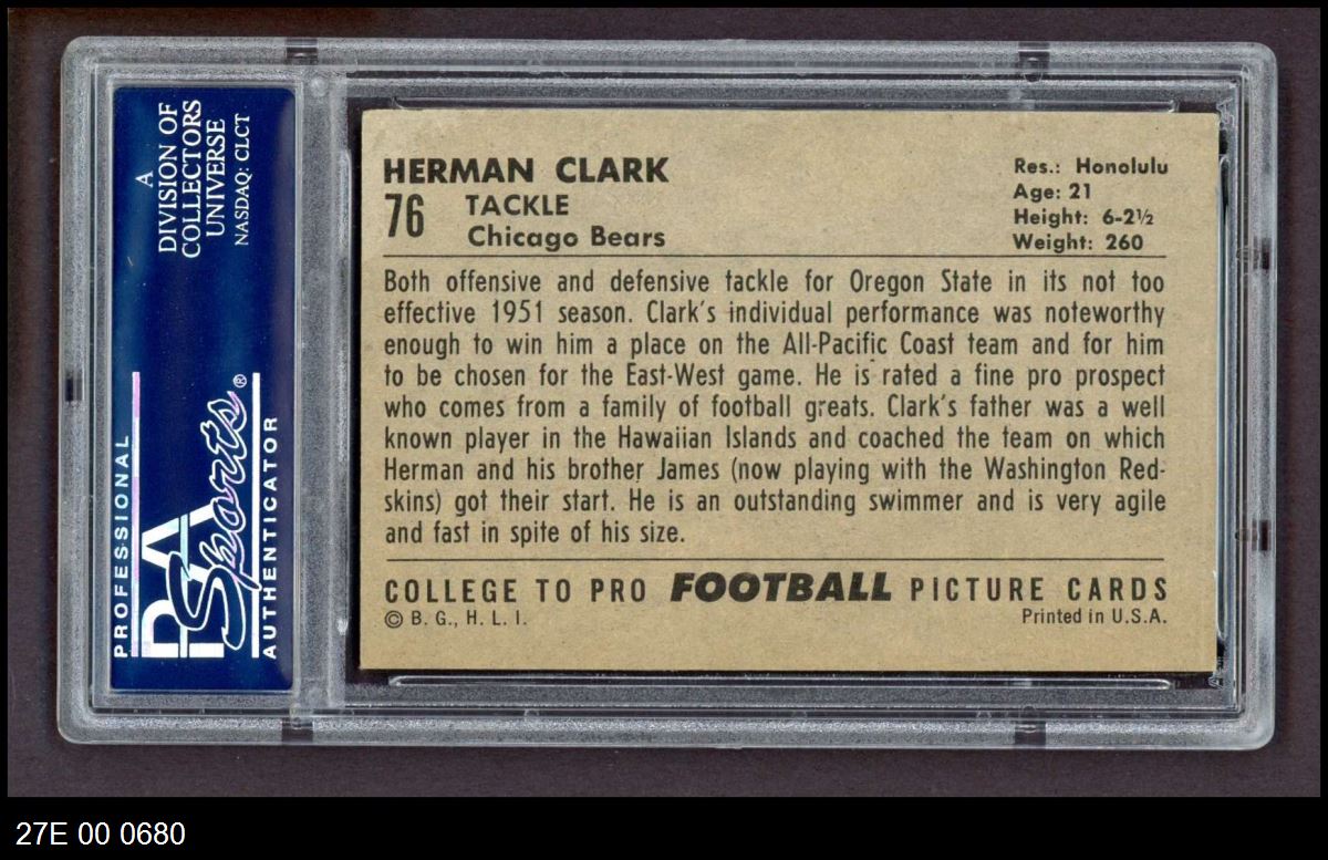 | 1952 Bowman Large #76 Herman Clark | PSA 5 - EX | Front | Back |