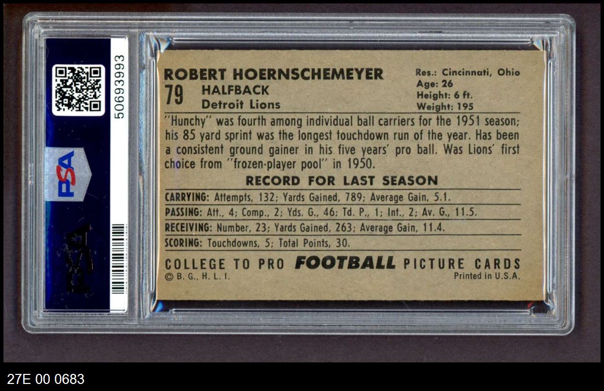 | 1952 Bowman Large #79 Bob Hoernschemeyer | PSA 5 - EX | Front | Back |