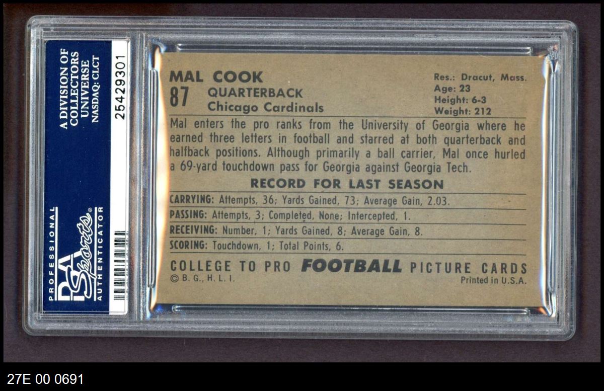 | 1952 Bowman Large #87 Mal Cook | PSA 5 - EX | Front | Back |