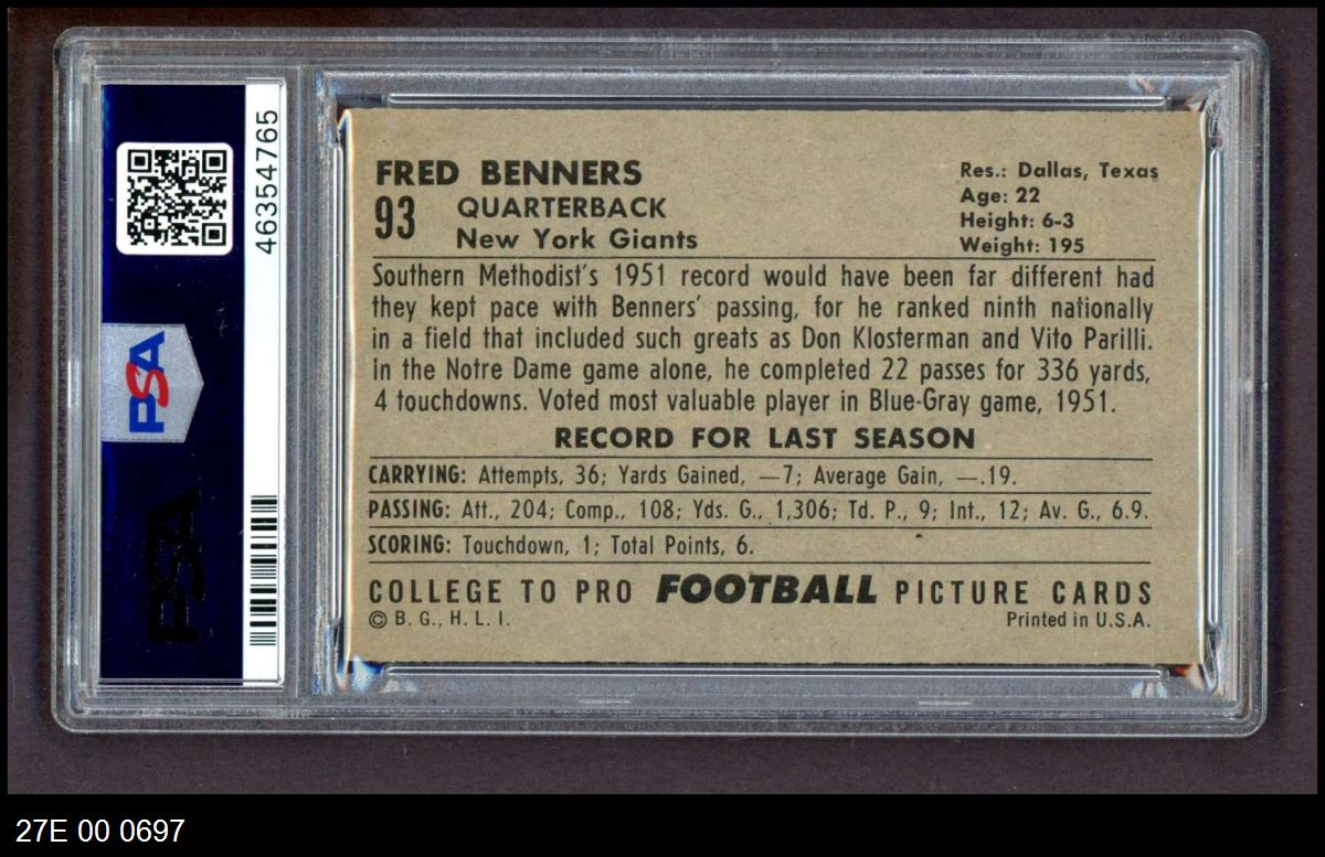 | 1952 Bowman Large #93 Fred Benners | PSA 4 - VG/EX | Front | Back |