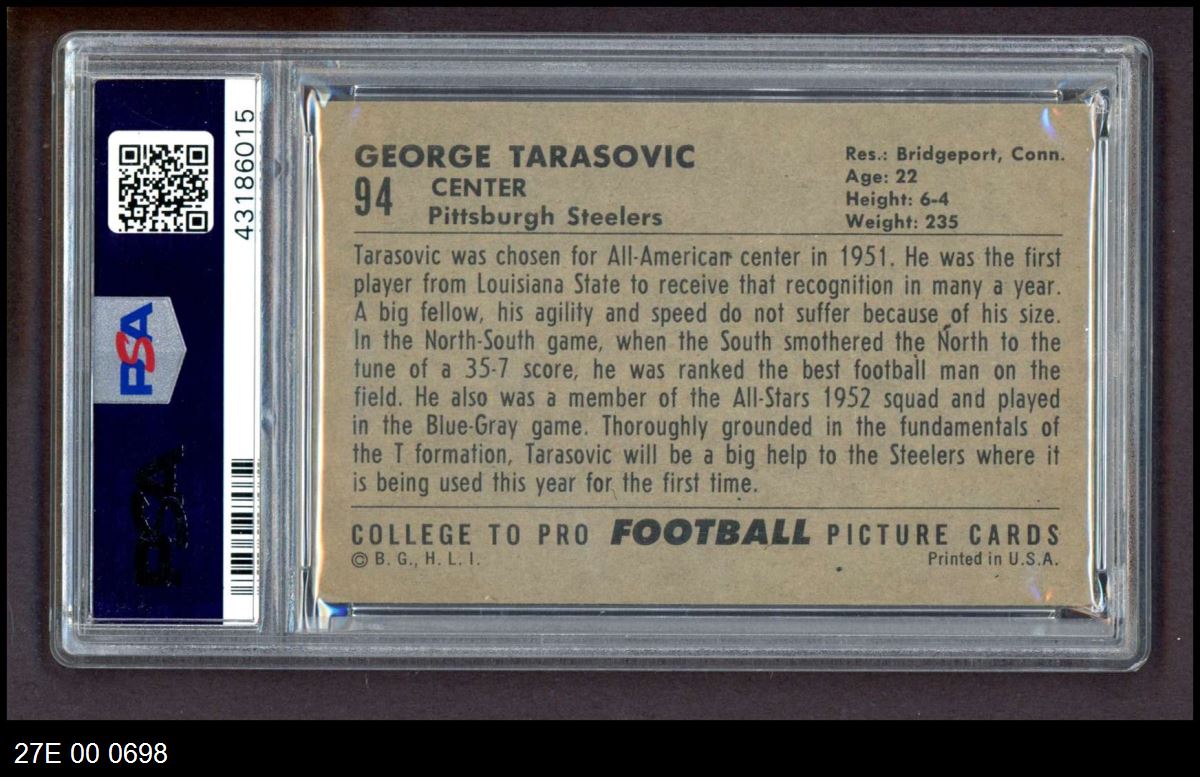 | 1952 Bowman Large #94 George Tarasovic | PSA 4 - VG/EX | Front | Back |