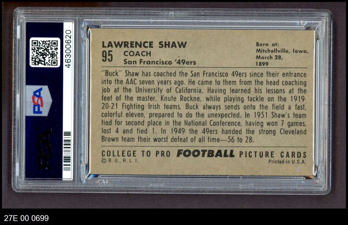 | 1952 Bowman Large #95 Lawrence Shaw | PSA 5 - EX | Front | Back |