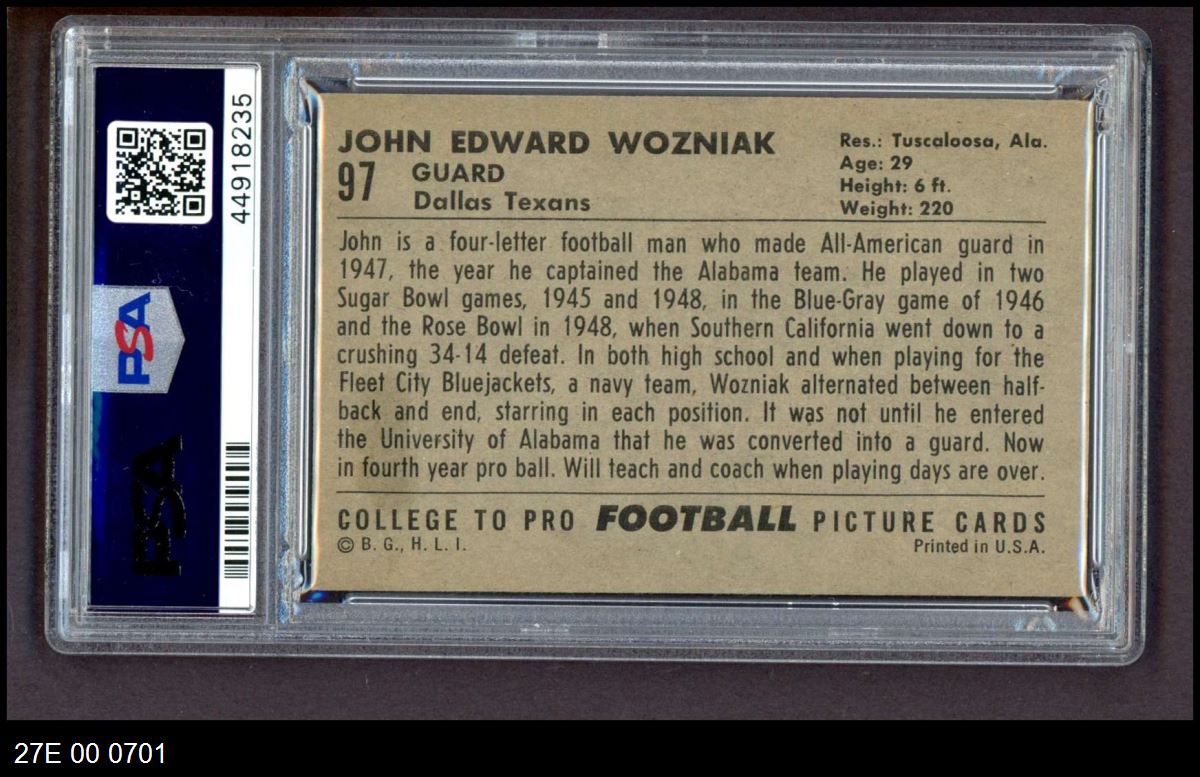 | 1952 Bowman Large #97 John Wozniak | PSA 5 - EX | Front | Back |