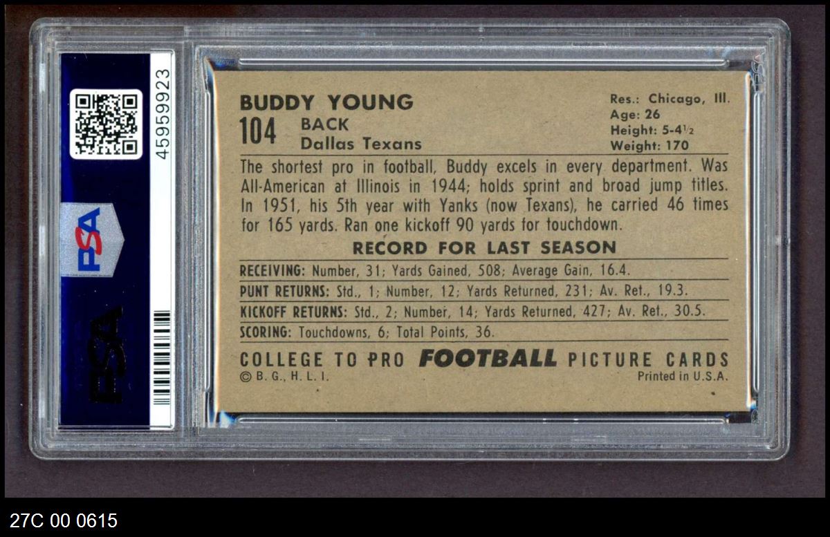 | 1952 Bowman Large #104 Buddy Young | PSA 5 - EX | Front | Back |