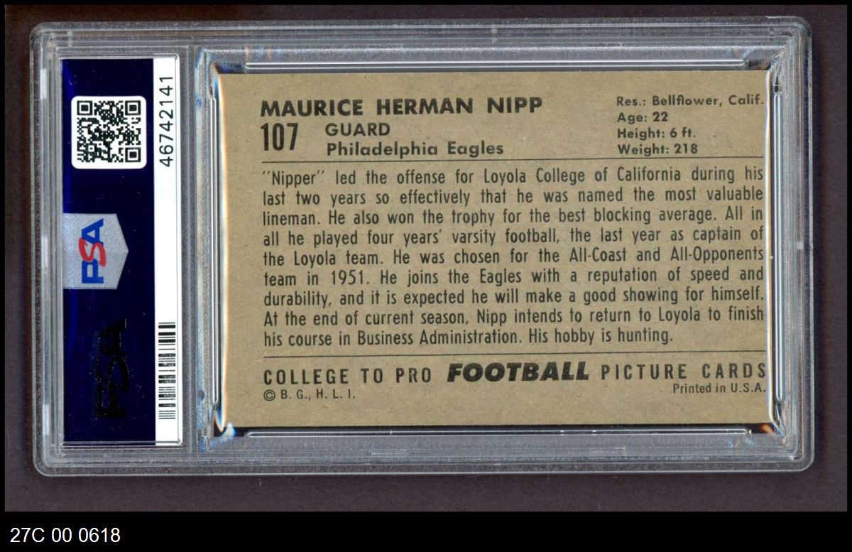 | 1952 Bowman Large #107 Maurice Nipp | PSA 5 - EX | Front | Back |