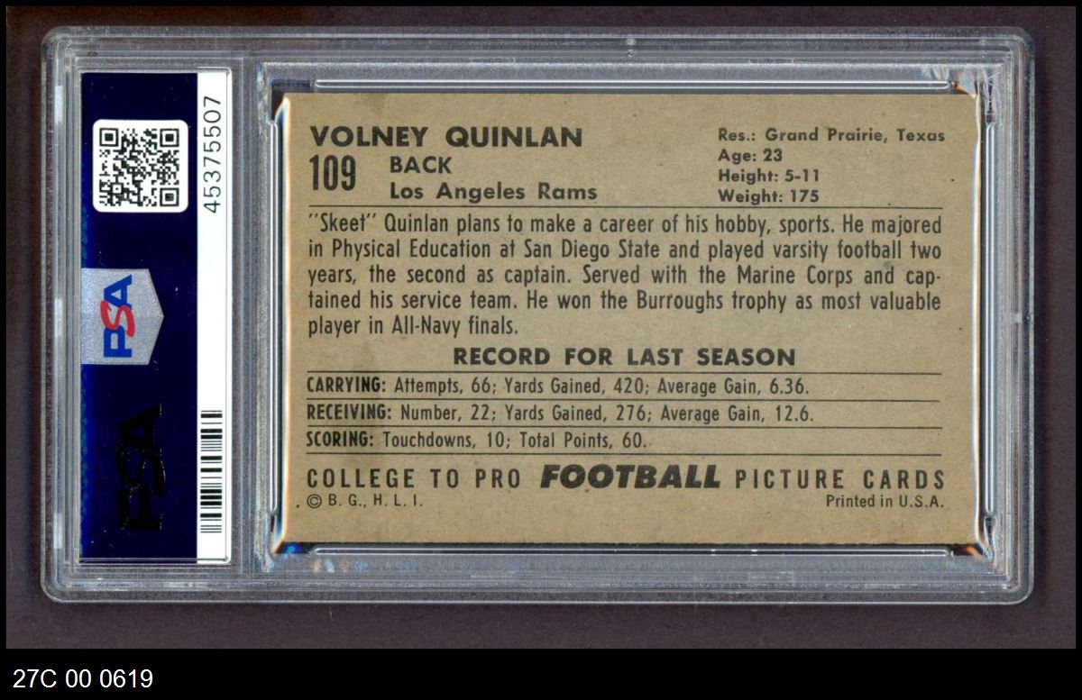 | 1952 Bowman Large #109 Volney Quinlan | PSA 5 - EX | Front | Back |