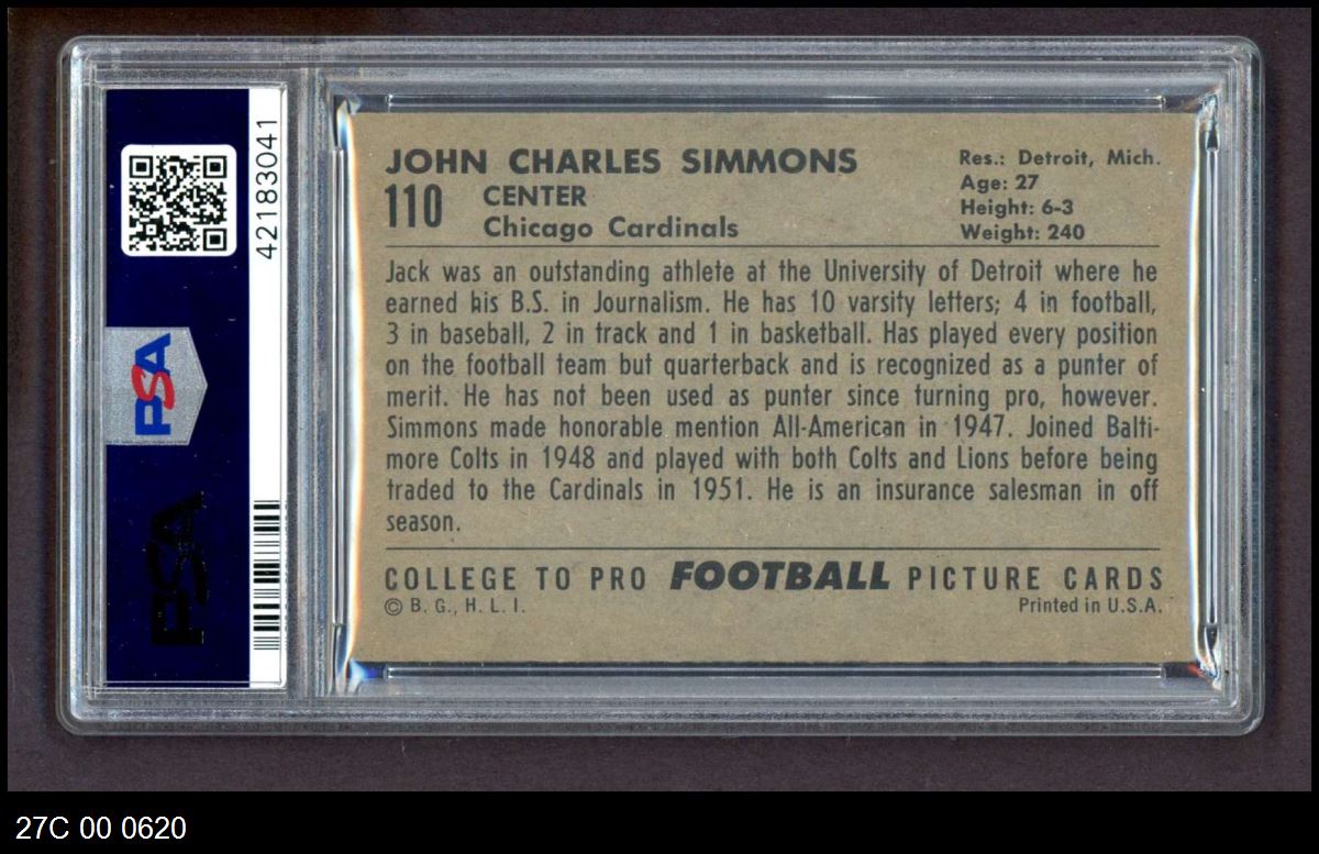 | 1952 Bowman Large #110 Jack Simmons | PSA 5 - EX | Front | Back |