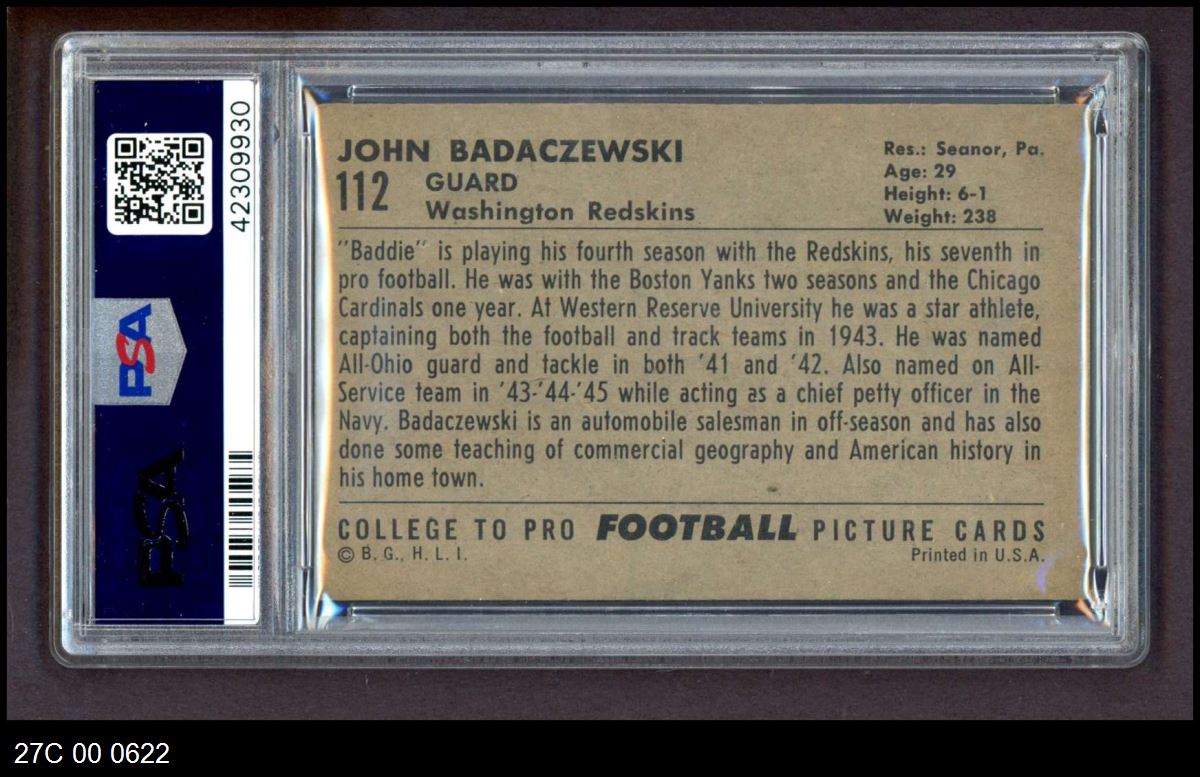 | 1952 Bowman Large #112 John Badaczewski | PSA 5 - EX | Front | Back |
