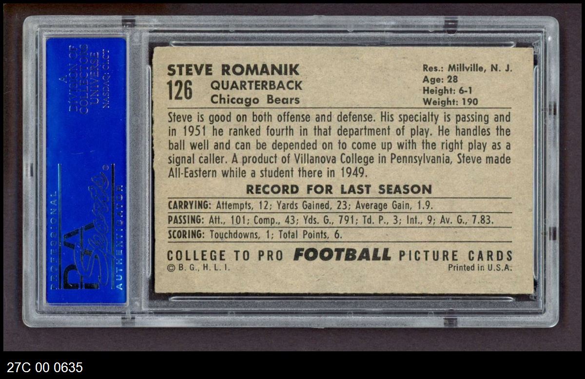 | 1952 Bowman Large #126 Steve Romanik | PSA 4 - VG/EX | Front | Back |