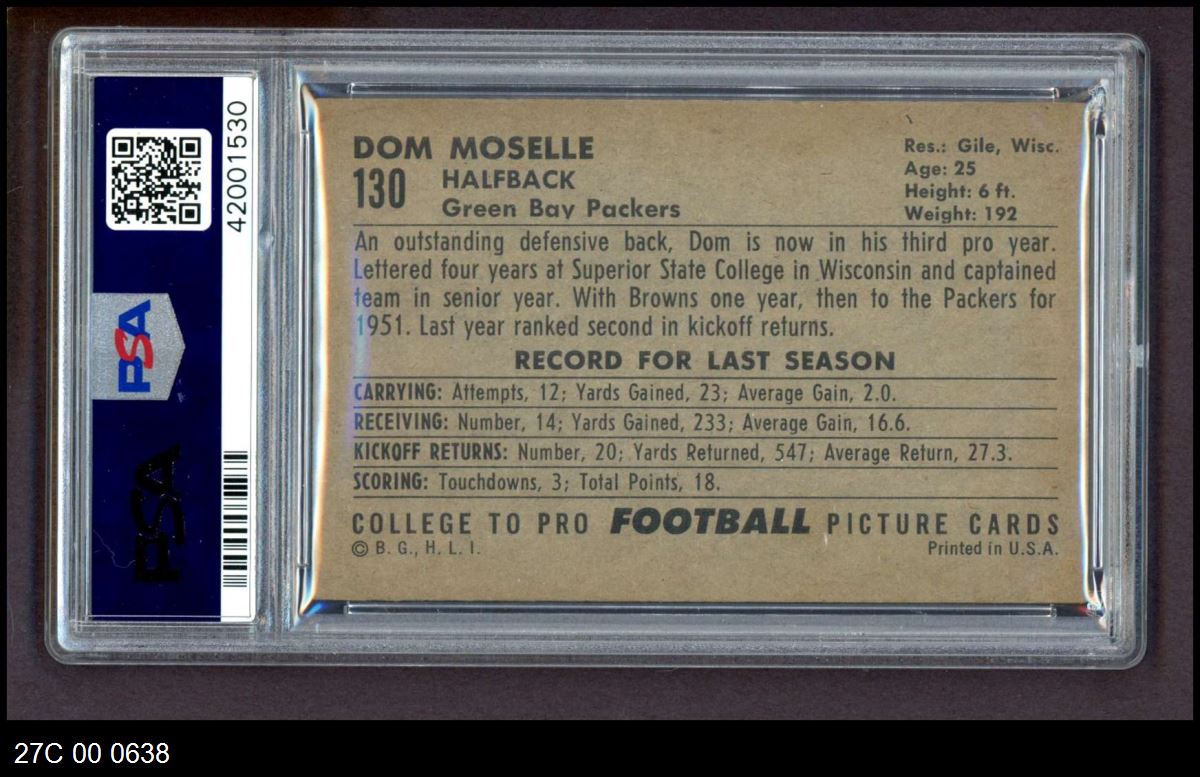| 1952 Bowman Large #130 Dom Moselle | PSA 5 - EX | Front | Back |
