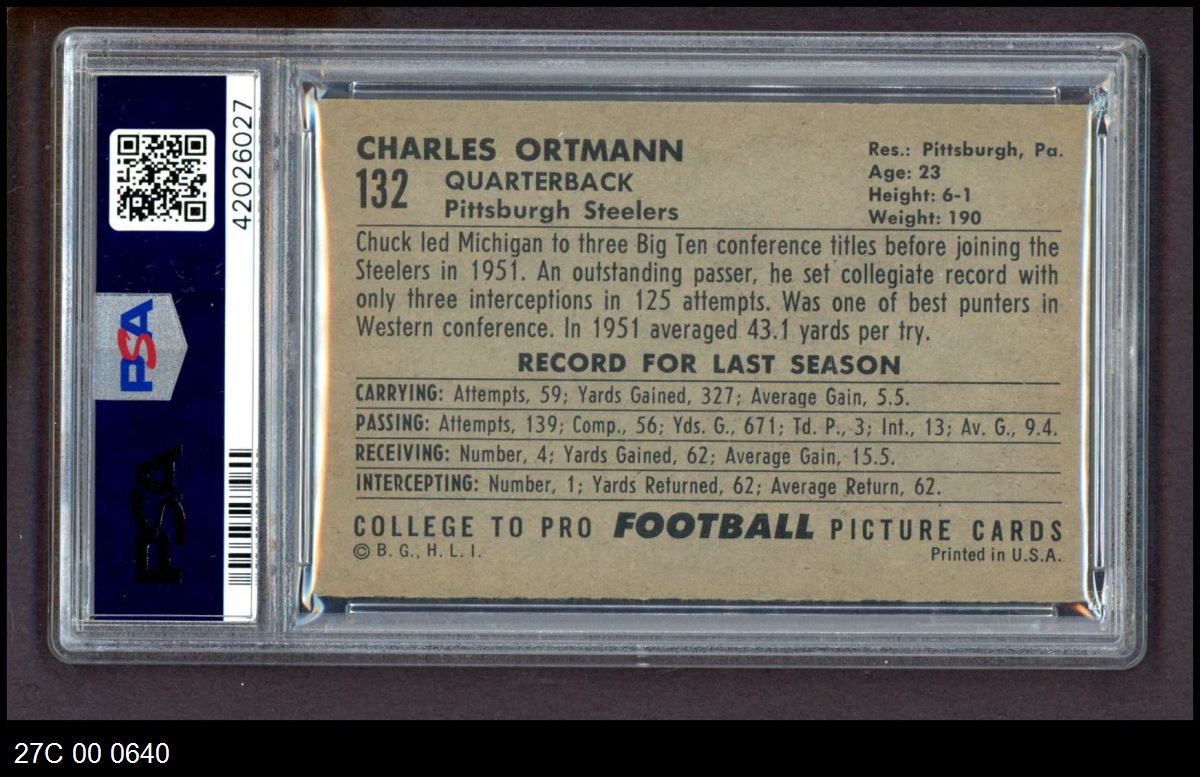 | 1952 Bowman Large #132 Chuck Ortmann | PSA 5 - EX | Front | Back |